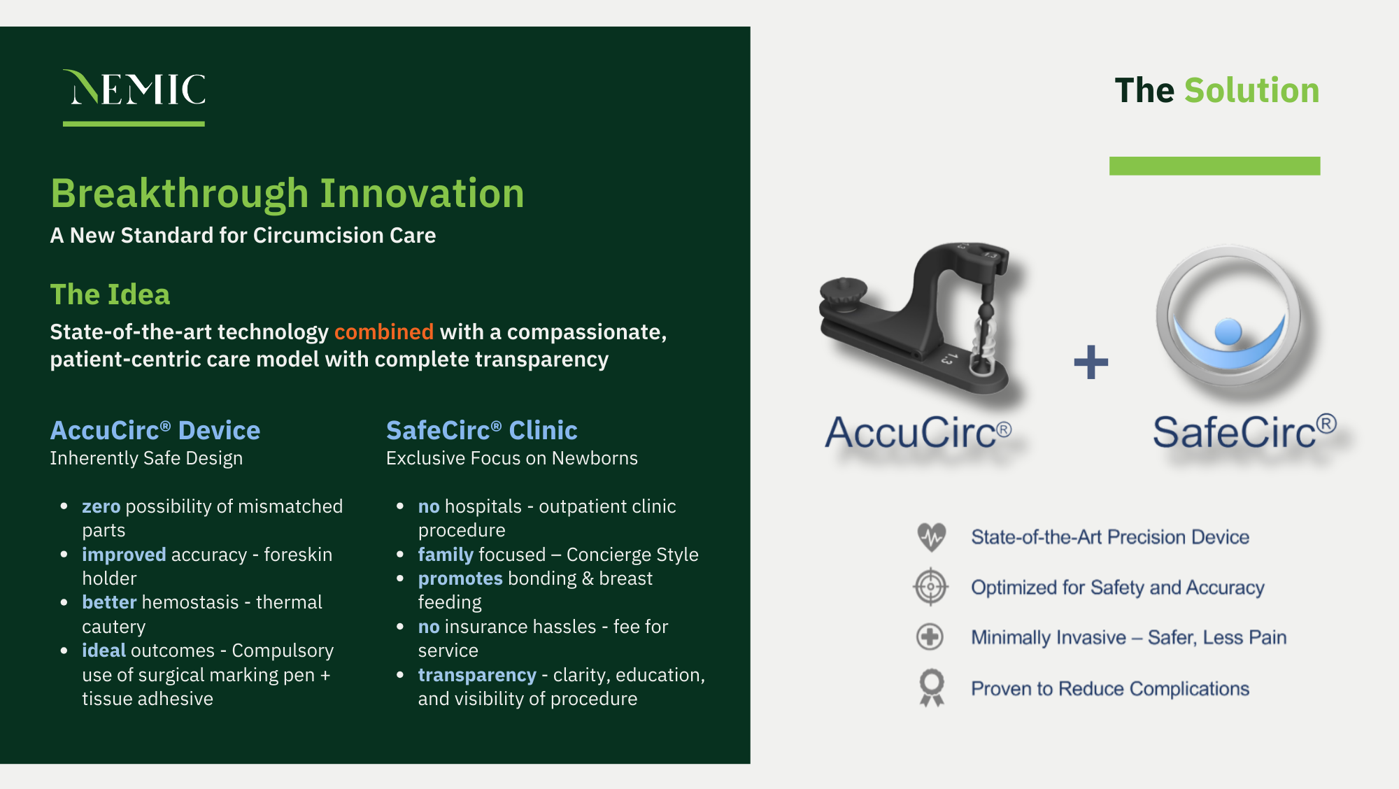 At the heart of SafeCirc’s success is its use of the AccuCirc® device, an FDA-cleared technology to make circumcisions safer, more precise, and less traumatic for newborns. Unlike traditional tools that require surgical cutting, AccuCirc integrates:
